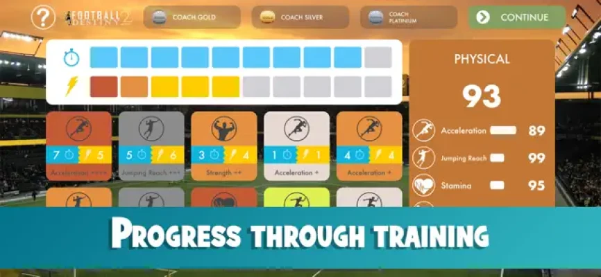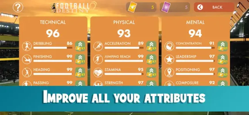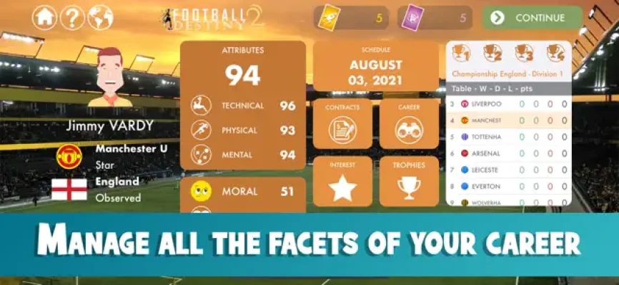 In Football Destiny 2, you start your career in a low-level club with no reputation and low-value attributes. But train hard and make the right decisions on and off the pitch and the doors to the big clubs will open for you.
