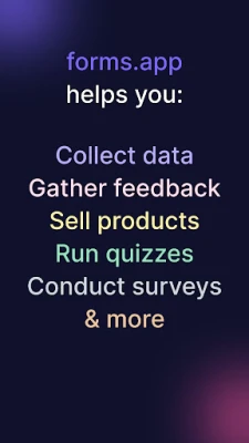 forms.app is an online form builder app and survey maker that enables you to create online forms and surveys easily. You can create forms and surveys in a few minutes, share them on different platforms and get responses instantly.