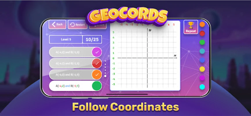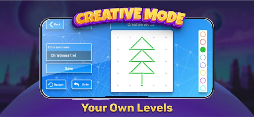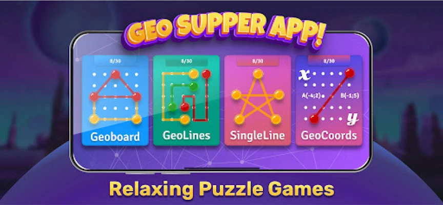 Geoboard is an excellent puzzle game for kids and adults to use geoboard and develop their attention, logic, coordination and mathematical thinking. We were inspired to create this game by physical analogue of the geoboard game that pupils of 1st grade use to learn creativity, colors and mathematical thinking. Geoboard game is half mathematical and half artistic puzzle game. From mathematics you have a coordinates geoboard and sample that your kid needs to repeat by using minimum moves. From art we have a mode where you or your kid should use your imagination and creativity to create picture of the object yourself.