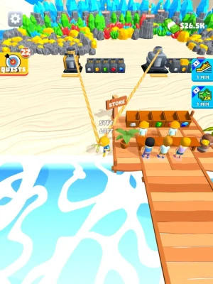 Pull valuable mines and upgrade your machines. Save people from and make them work for you.