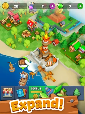 Collect gold to hire more lumberjacks! Merge them together and increase their power and efficiency. Break through difficult obstacles to collect Gold, Gems, and Energy and complete more levels.