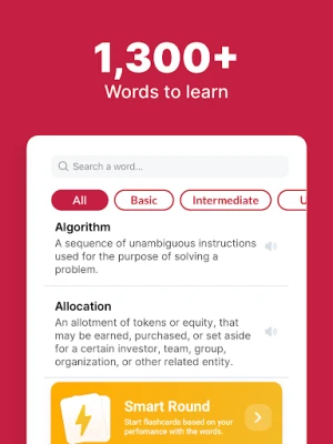 Our app includes more than 1,300 essential GRE vocab words, chosen with care by our expert tutors. Utilize our Smart Round feature for tailored flashcards, powered by our advanced learning algorithm, for a smoother, more personalized GRE vocabulary study experience.