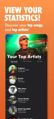 VIEW your Listening Statistics including your Top Songs and Top Artists.