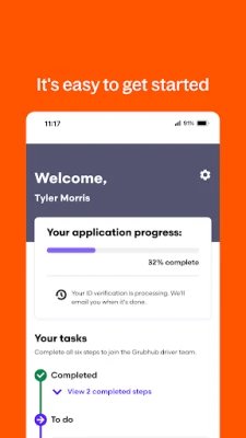 Download the Grubhub for Drivers app and sign up to work at driver.grubhub.com. We’ll walk you through each step along the way.