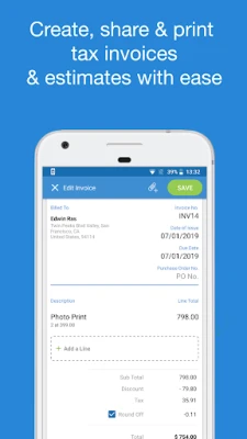 ★Invoicing: Invoices for products and services; Customize invoice fields like quantity, rate, amount in words, shipping details; Add company logo to invoices; Sign your invoices; Send invoice via email/WhatsApp or take prints; Track paid & outstanding invoices
