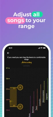 Songs in the app are easily adjusted to your voice, making it comfortable to sing.