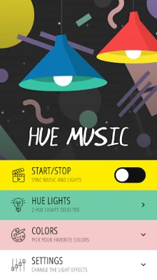 Sync your music with Philips Hue lights and enjoy a light show with real-time audio visualisations at home. Connect one or more Hue lights to the app through a simple onboarding procedure and enjoy your disco music party. The app creates a real-time light show based on the incoming music, using the microphone or internal sound card of your device. It synchronizes your Philips Hue lights to the music. Adjust the settings to create your desired ambience, from disco party to relaxed atmosphere.