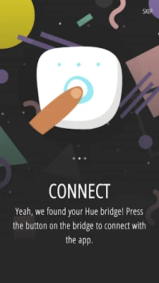 - Step 2 - As soon as your Philips Hue bridge is detected, you need to connect it to the app by pressing the big button on the Hue bridge.