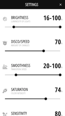 - DISCO: A high disco effect results in more color changes. If you prefer a quiet and relaxed setting, lower this setting