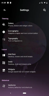 Pro features: • Gestures • Further icon customizations including label size, text color, display/hide text shadow and multiple lines for labels • Custom launcher font (by importing your own .TTF files) • Disabling app suggestions from the top of your drawer • Two row dock • Google Smart Widget + customizations • ...and much more!