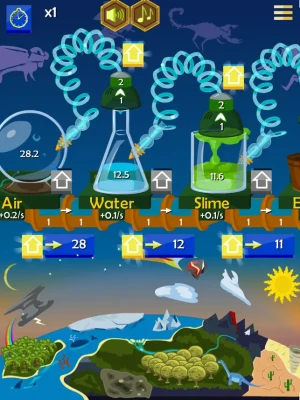 As you alchemy laboratory grows, you can spend elements to upgrade the transmutation power or to create a whole world of you own. Once created, the world will help you boost your laboratory.
