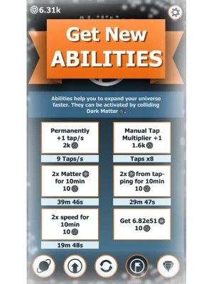 • Obtain Dark Matter and use special abilities like automatic tapping, speeding up collisions and many more!