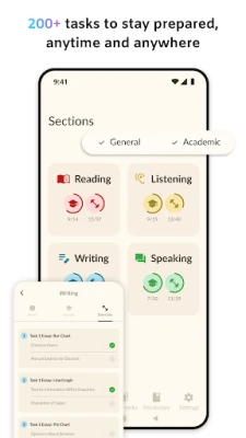 Are you aiming for a high score in the IELTS exam? Our app is your ultimate solution designed to increase your scores across all test sections. Whether you are focusing on IELTS vocabulary, mastering IELTS writing, or enhancing your English listening and speaking skills, this app is your ideal IELTS assistant, tailored for both Academic and General modules and featuring IELTS practice tests, interactive lessons and exercises, expert tips and tricks, answer strategies, and covering topics that require the most attention to make you fully prepared to achieve your goal.
