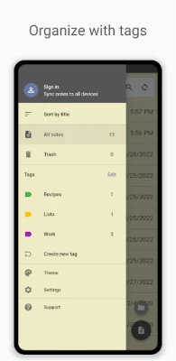 - Tags to organize notes