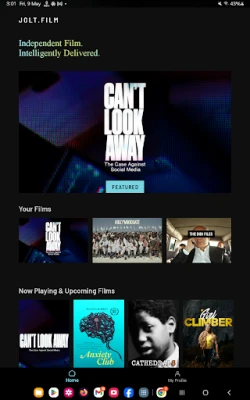 Jolt launches extraordinary films in direct collaboration with filmmakers to maximize their reach and impact. We handpick our films from our global network of visionary filmmakers, making them exclusively available to audiences for a limited time. Our proprietary Interest Delivery Network—a predictive digital platform with machine learning harnessed by data analysts and performance marketers—tailors and expands audiences in real time, ensuring that each film reaches its fullest potential while filmmakers retain full ownership and control.
