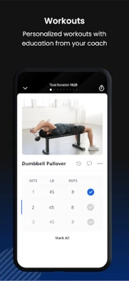Our platform enables our members to: - Follow a curated exercise routine, hand designed by your trainer - Track nutrition, either explicitly or through simple photo upload - Integrate all fitness wearables onto one platform to better inform your trainer - Directly message your trainer 24/7, including voice notes or video messages - Track your workouts and strength history over time - Sync with Apple Health app to update your metrics instantly