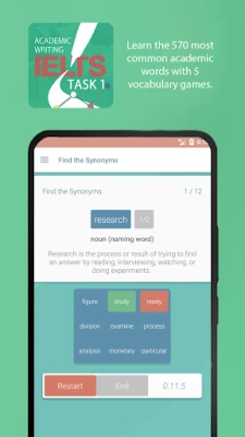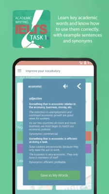 This app contains no ads and all its features are free. If you want to support us, you can make an in-app donation or pay a small fee to have your task 1 reports marked with feedback emailed to you by our experienced IELTS teachers.