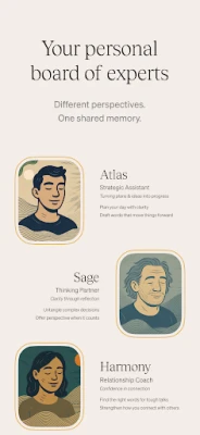 Each expert has a distinct style, but all share the same memory, so your notes, reflections, and conversations stay connected.