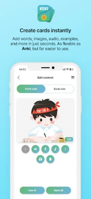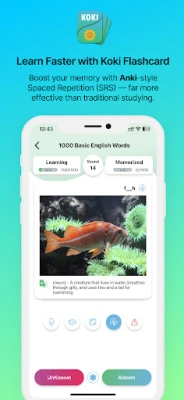 Koki Flashcard is a multilingual vocabulary learning app that applies the Anki-style Spaced Repetition System (SRS) to help you memorize faster, retain longer, and learn more effectively. Beyond English, Koki supports a wide range of languages such as Japanese, Korean, Chinese, Spanish, and many others—perfect for all types of learners.