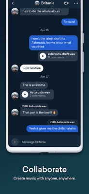 Collaborate with messaging made for music makers. Share secure audio and video messages securely and collaborate with the ability to leave timestamped text comments directly on your tracks.