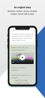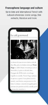 Motivation, Humor and French Culture: Discover the diversity and richness of French culture around the world with the help of Victor Hugo and friends. Every day, you'll come across different accents, songs, and films in addition to original stories and texts.