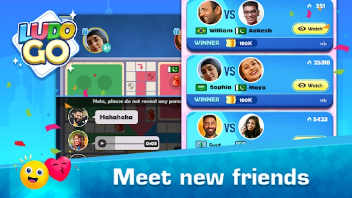 In Ludo Go's Live Room feature, you can join ongoing games and watch others play Ludo. Engage with fellow players through live chat, send messages, share strategies, and even send virtual gifts to show your appreciation. Ludo Go isn't just a game – it's a lively social experience that brings people together in a fun and entertaining environment.
