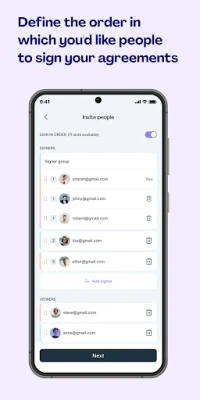 • Send and track with ease: Request signatures, set signing order, and get notified when others view or sign.