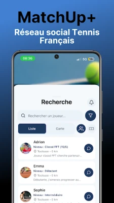 Vous cherchez quelqu'un avec qui jouer au tennis ? MatchUp vous connecte avec des joueurs de votre niveau, près de chez vous !