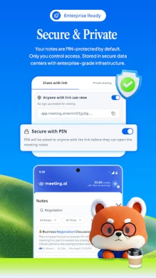Every meeting becomes searchable. Find any discussion, decision, or detail from your entire meeting history in seconds. Export meeting minutes and transcripts to your favorite tools. Share with a link or protect with a PIN.