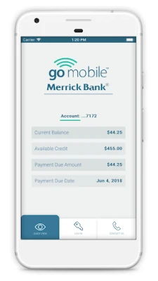 Note: There is no charge from Merrick Bank for the goMobile App, but message and data rates may apply. Please check with your mobile carrier regarding any web browser/data usage rates on your device.