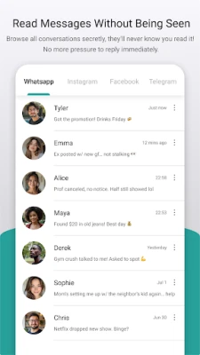 Your messaging lifesaver! With Message Peeping Tom, peek at messages without triggering read receipts.