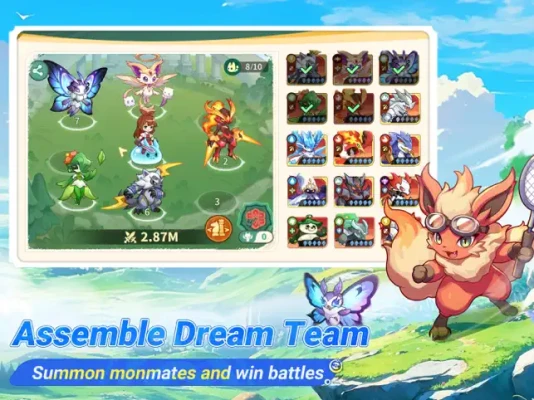 Each monmate has two shapes: the Pet shape and the Furry shape. Try you best to know more about these fantasy species and befriend with them. You are the TOP1 Monmate master, right? Train, level up your Monmates and create powerful squads. Look what will happen when you create your battle teams with various Monmates of different elements.