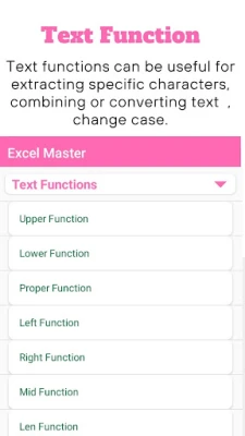 This app contains a list of tutorials & MS Excel formulas / functions including LOOKUP, VLOOKUP, HLOOKUP, INDEX, MATCH, SUM, subtract, multiply, percentage, COUNT, AVERAGE, MIN, MAX, Data Validation and many more.