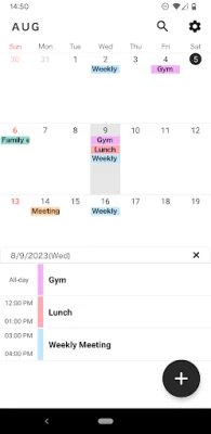 It takes one tap to open a daily planner, choose time and schedule a new event or task for any day. If necessary you can also keep notes and set an alarm or appointment reminder in order not to miss anything written in your personal or business calendar.