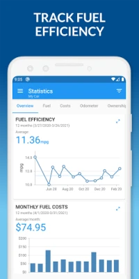 • Compare fuel prices and efficiency across stations you visit