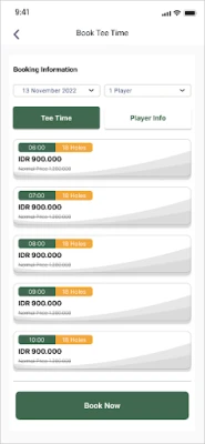 Aplikasi untuk pemesanan Tee Time, Driving Range, Makanan dan Minuman yang nyaman dan aman