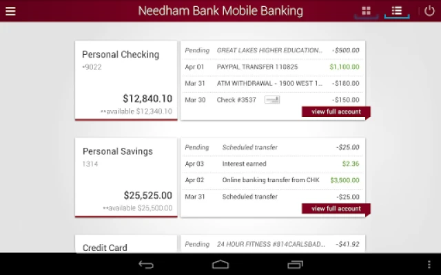 You can check your balance, view account activity, pay bills, transfer money between accounts, view and activate your cash back offers and find the nearest Needham Bank location or ATM - all right at your fingertips.