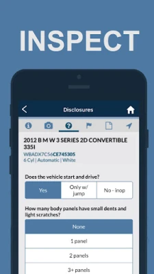 Next Inspect™ allows you to: - Log in with your Manheim provided credentials - Scan VINs to view vehicle information - Provide details about a vehicle's condition - Capture images of vehicles