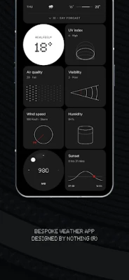 A unique weather app under Nothing’s iconic visual identity. With simple, essential functions. Including weather alerts and multiple city weather forecasts.