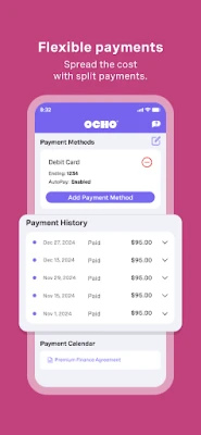 Looking for an app like Hugo Insurance? At OCHO, we do things differently. Hugo insurance offers pay-as-you-go insurance, which can leave you with risky gaps in coverage that may lead to you not having coverage and more expensive rates. With OCHO, you get continuous coverage and flexible payment plans—keeping you protected without the worry.