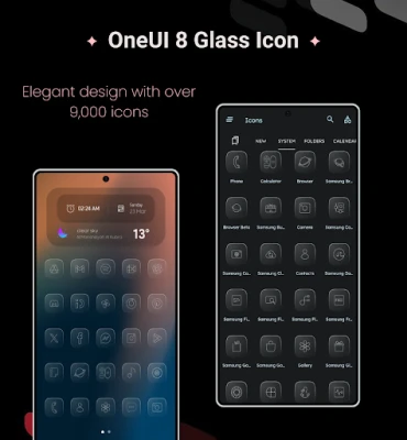 OneUI 8 Glass Icon Pack – The Ultimate Glass-Inspired Experience.