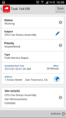 Oracle Mobile Field Service for Mobile Devices allows field service technicians to remotely access customer, product, service request and task related information. Technicians can continue to update their tasks, capture materials, time, expense details, access inventory levels, return, transfer and request parts regardless of the internet connectivity and synchronize when they are online.