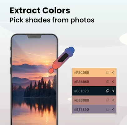 Unleash your creativity with Palette—the perfect app for designers, artists, and color enthusiasts. Effortlessly create custom color palettes, extract stunning colors from any image, and keep your favorite shades organized for all your creative projects!