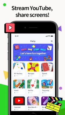 Share other apps, websites, photos, videos, or even intense gameplays with everyone in your room! Perfect for showing off new character designs or discussing game strategies, making hangouts super interactive and fun!