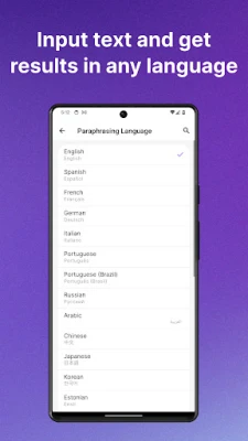 - Multilingual Support: Change the target language according to your preference. The app is linguistically flexible allowing you to translate your paraphrased text into multiple languages.