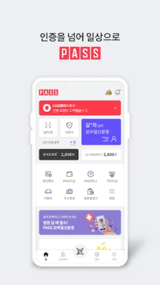 - 모바일신분증 : 운전면허증과 주민등록증을 PASS에 등록하여, 실물 신분증과 동일한 법적 효력을 가지고 편리하게 사용 가능