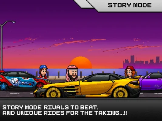 One of the most challenging drag racing pixel retro games with countless features to build cars, tune, and race with your favorite cars!