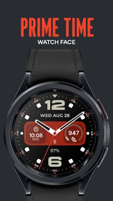 Prime Time is a standout analog watch face designed for Wear OS, featuring striking bold numbers at the 12 and 6 positions. This unique design element gives Prime Time its distinct look and style, making it an eye-catching addition to your smartwatch.