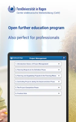 This app supports the FernUni certificate course. The first chapter is available for preview free of charge. To access the full content, a booking through the Center for Continuing Education (CeW) at FernUniversität in Hagen is required.