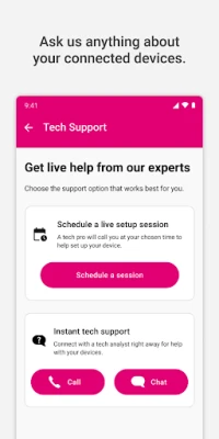24/7 access to a live tech pro via call or chat to help you set up, connect, and troubleshoot your home electronics